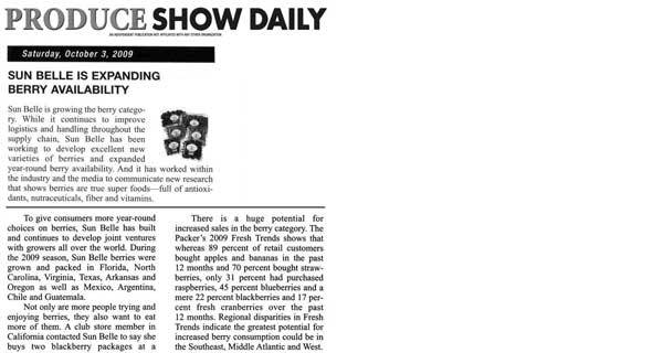04/10/2009 - Sun Belle Inc. Distributing fresh produce all over the world