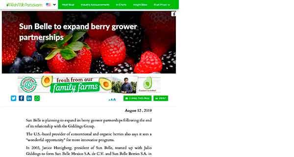 08/16/2019 - Sun Belle amplará asociaciones de productores de berries
