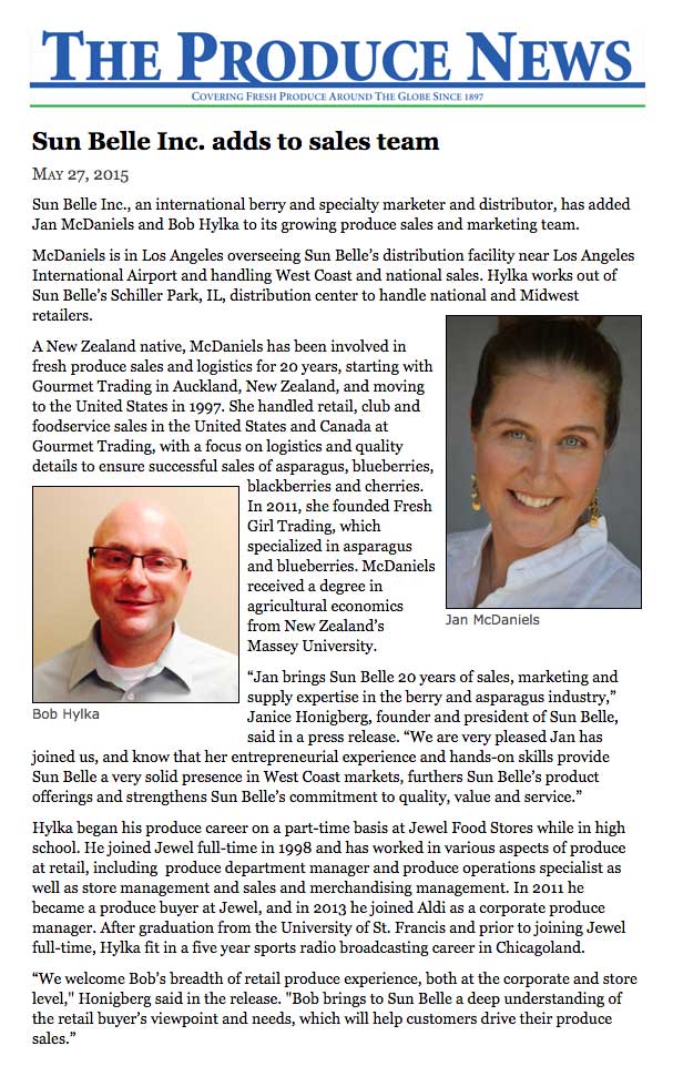 05/27/2015 - Sun Belle Inc. adds to sales team